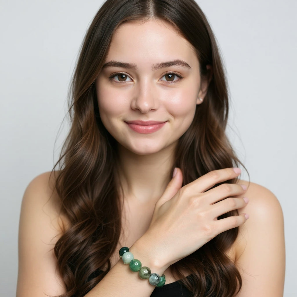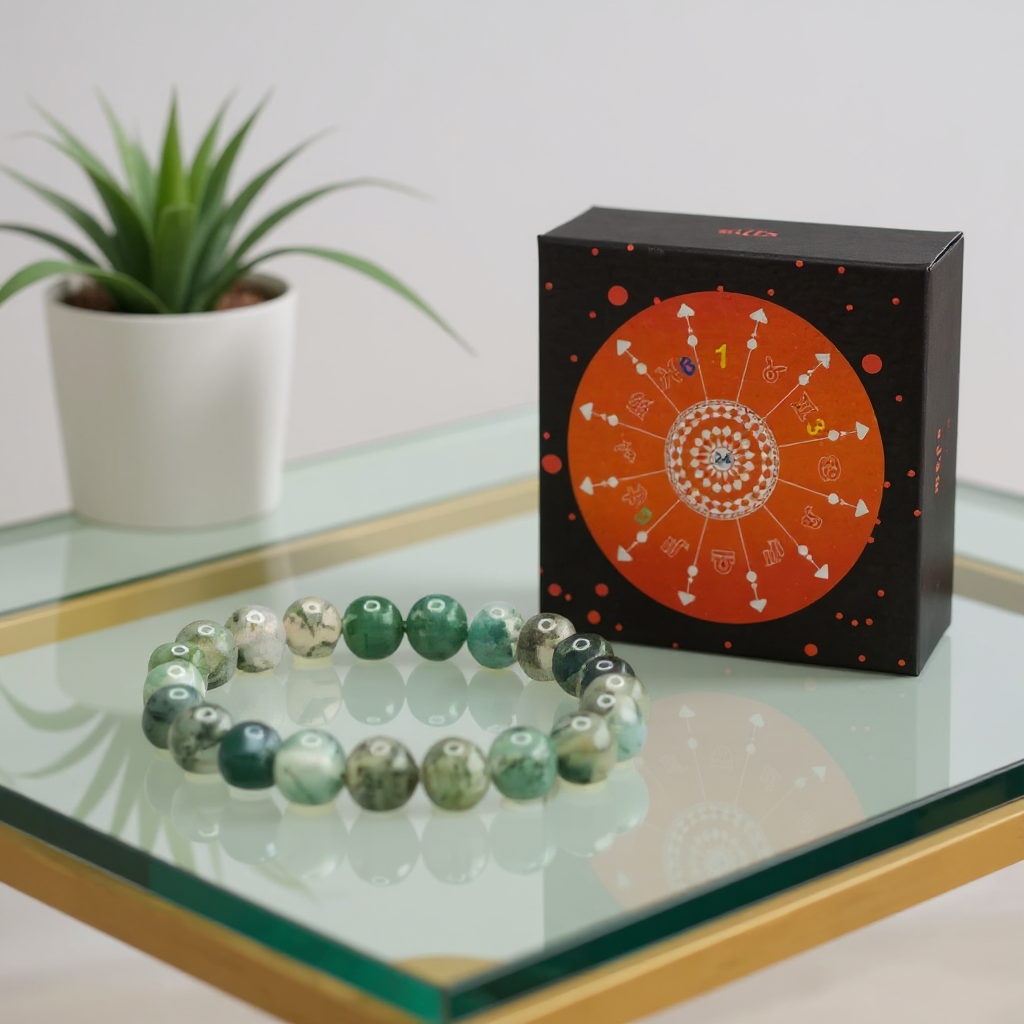 The Moss Agate Bracelet carries earthy green energy that grounds the wearer while enhancing inner growth stability and prosperity, ideal for those going through change or building something new this stone inspires patience reduces anxiety and aligns you with nature’s flow of abundance and balance,
