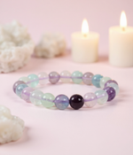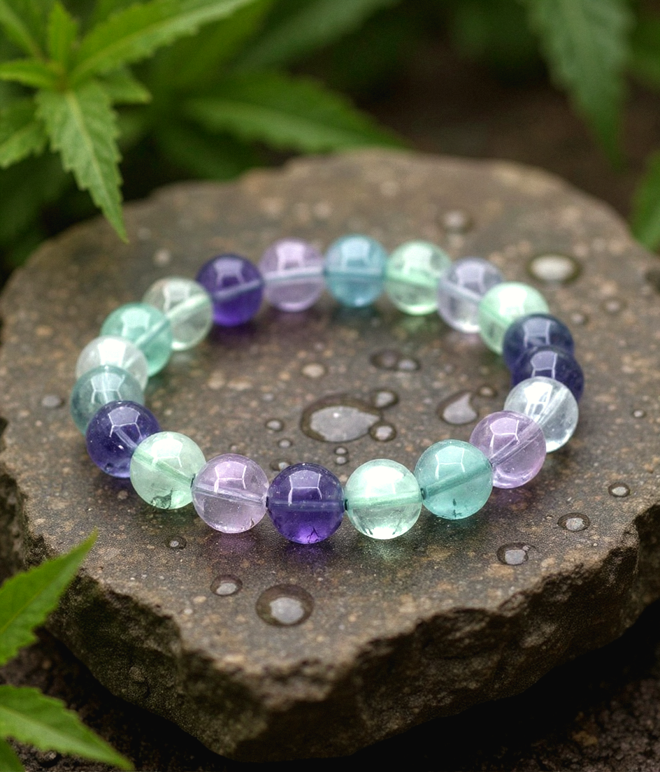 The Multi Fluorite Bracelet brings together the vibrational spectrum of fluorite to support focus clarity and emotional equilibrium, known for absorbing negative energy and encouraging structured thought it is ideal for students professionals and anyone navigating complex decisions or emotional confusion,