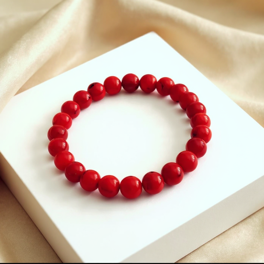 The Red Coral Bracelet is known for its fiery Martian energy which ignites strength action and grounded passion in all areas of life, it is especially helpful for those feeling dull fearful or indecisive as it energises the root chakra and helps you stand firm in your decisions,