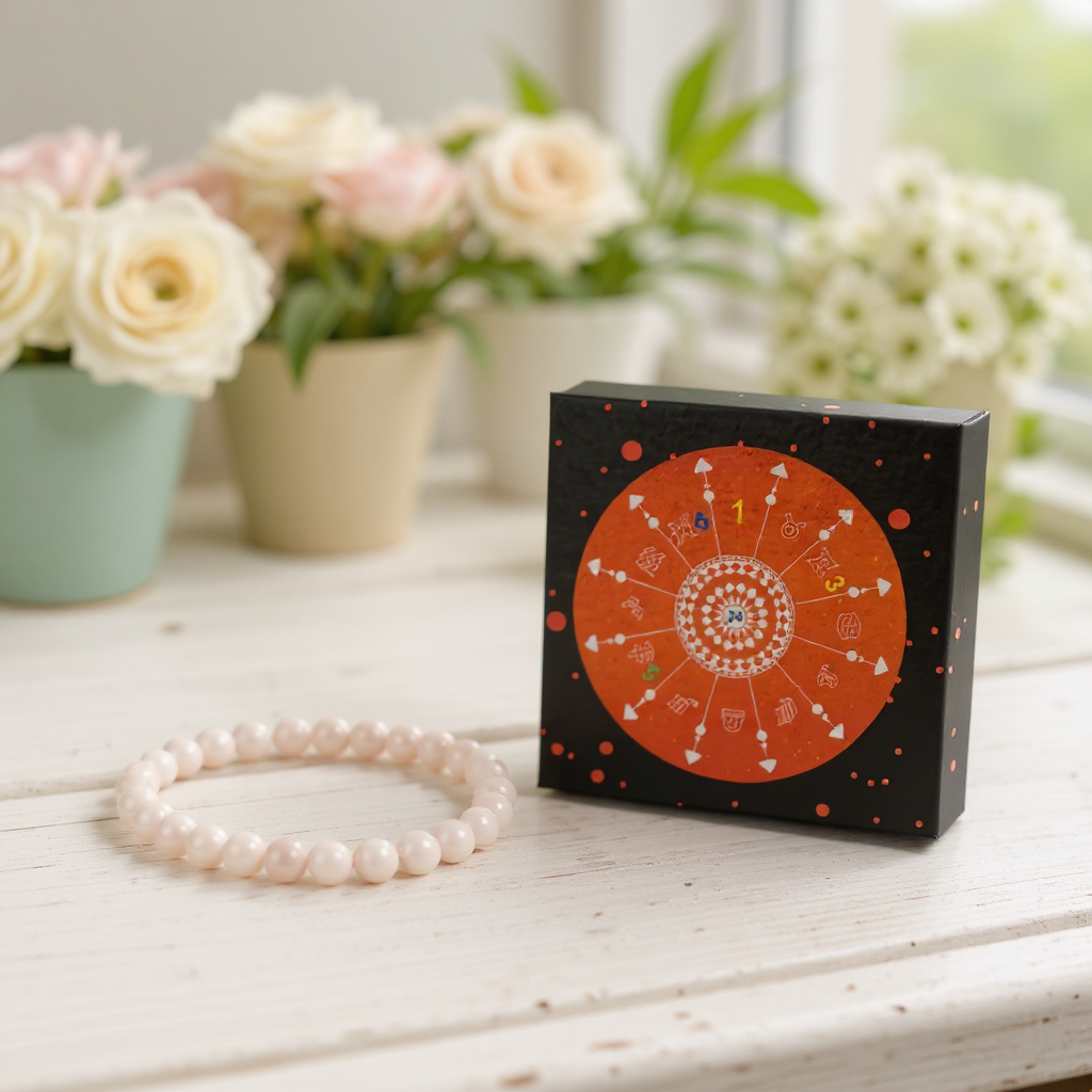 Crafted with natural rose quartz to support emotional healing and heart chakra activation