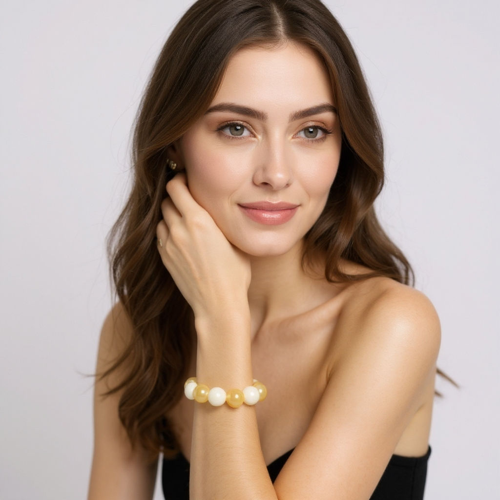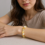 The Yellow Calcite Bracelet radiates bright sunny vibrations that uplift the spirit enhance clarity and energise your intentions, perfect for those dealing with procrastination low self-esteem or creative blocks this crystal supports the solar plexus chakra and promotes a cheerful focused mindset,