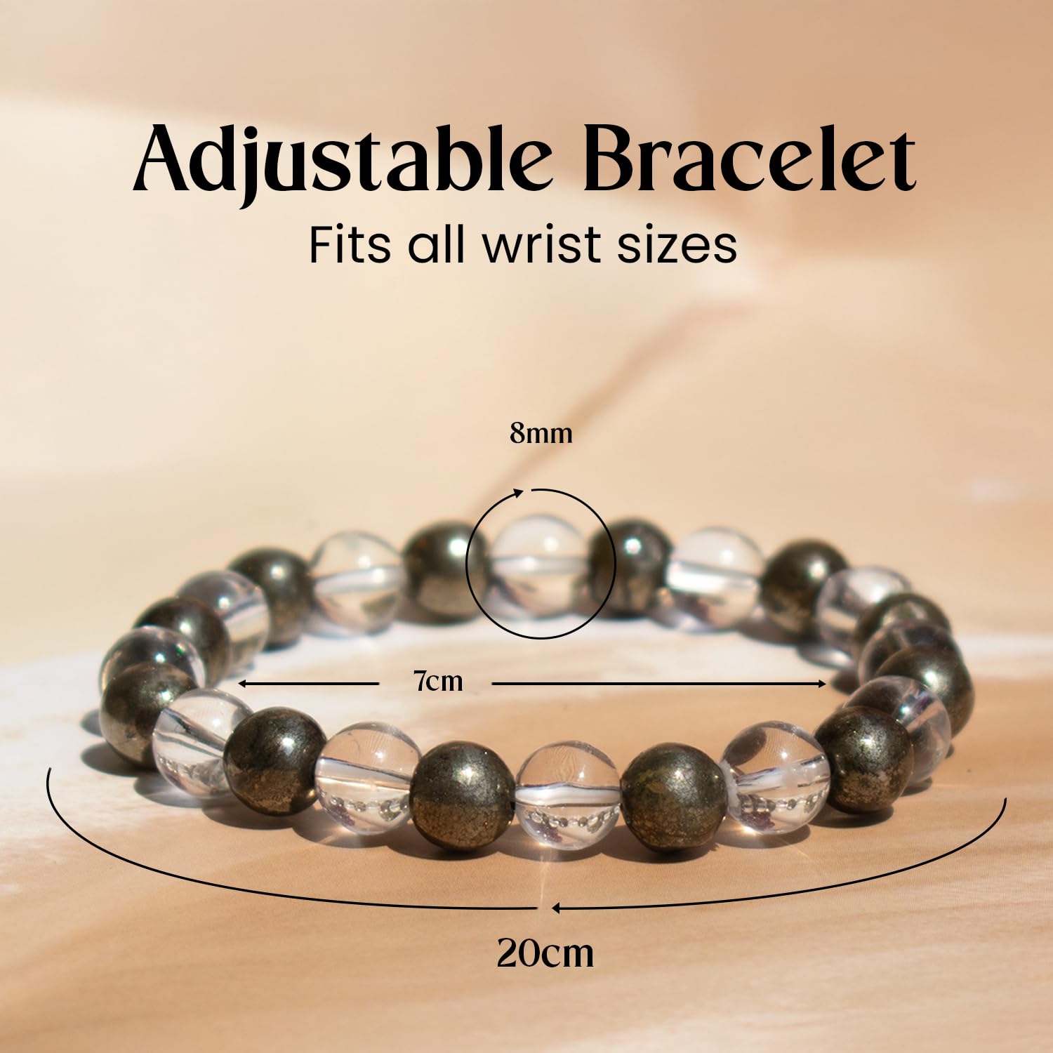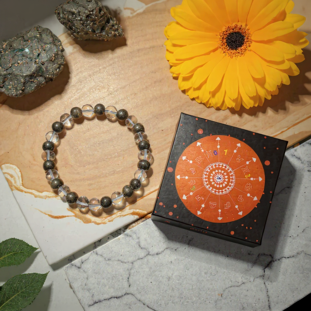 Attract money and success at lightning speed with the Super Raw Pyrite Bracelet. This powerful combination of Raw Pyrite and Clear Quartz enhances your money-attracting energy, boosts focus, and helps clear blocks to abundance.