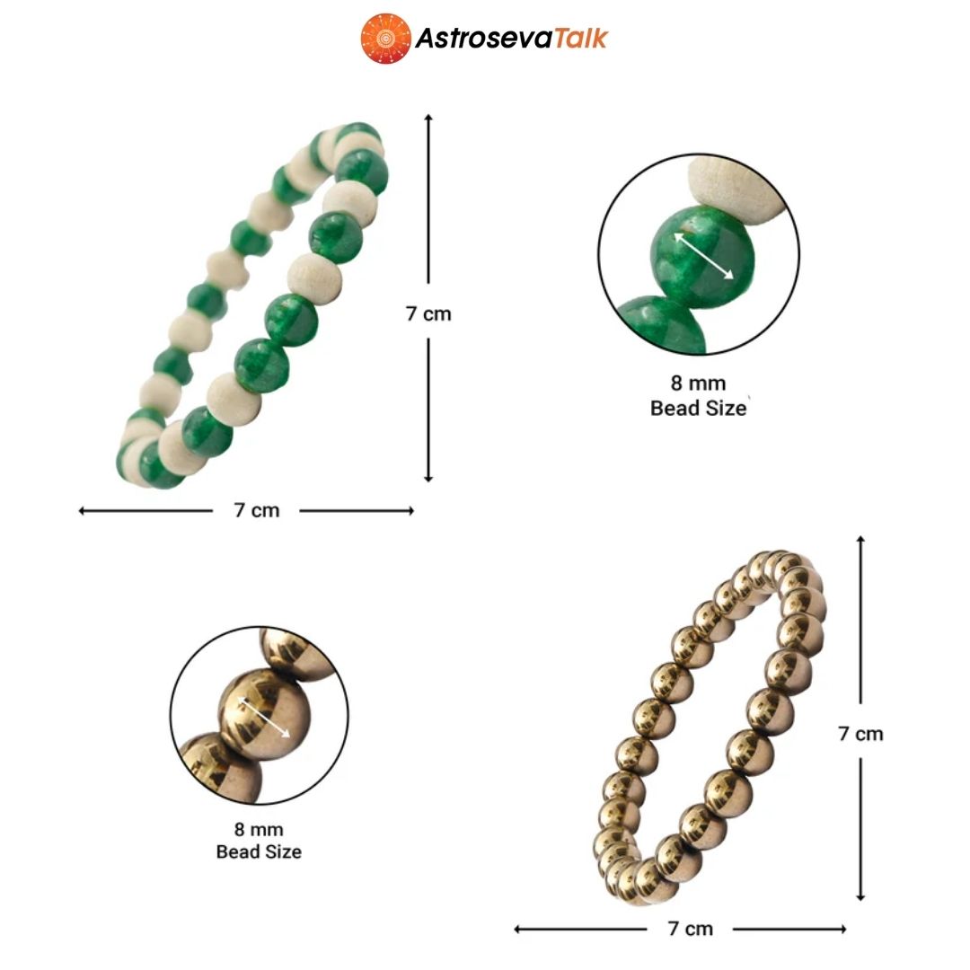 The Money & Luck Combo pairs Green Aventurine, often associated with good fortune, with the Money Magnet Bracelet, linked with themes of abundance and confident intention. This duo is worn to align your mindset with opportunity, positivity, and success-oriented focus.