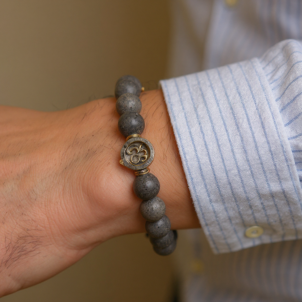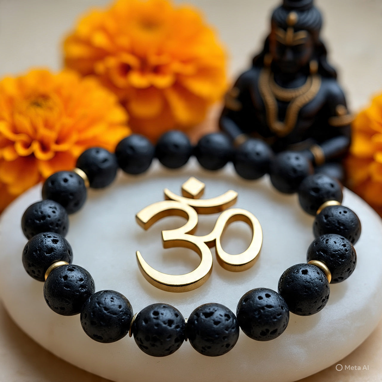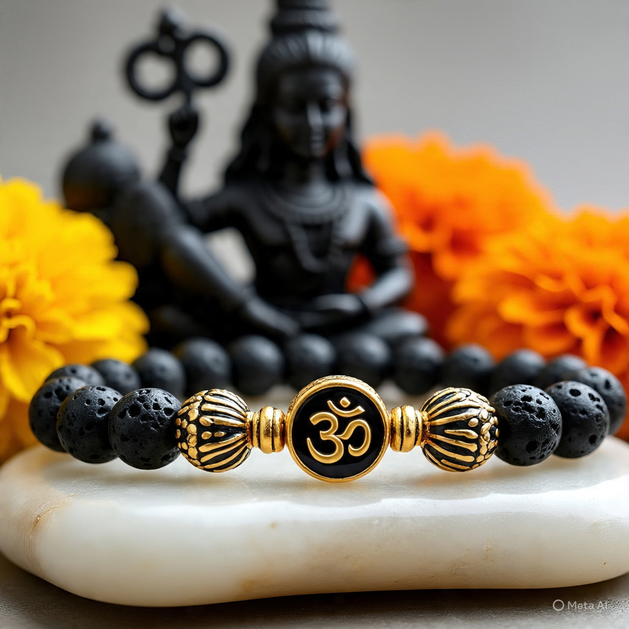 Attract money, blessings of Lord Shiva, and find peace. This bracelet combines, a Black Obsidian Om bead, and two lava beads for a complete money and peace solution.