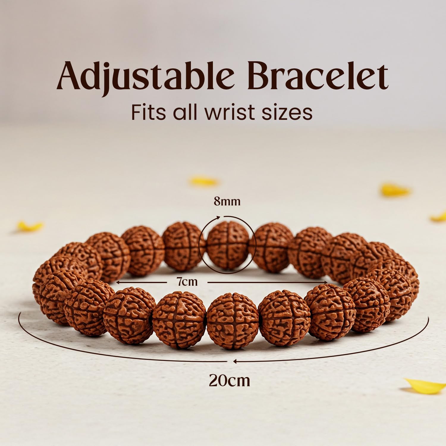 Bring money, peace, and spiritual power into your life with this sacred 7 Mukhi Rudraksha Bracelet. Also known as Mahalakshmi Rudraksh, it promotes wealth, inner calm, chakra balance, and emotional resilience.