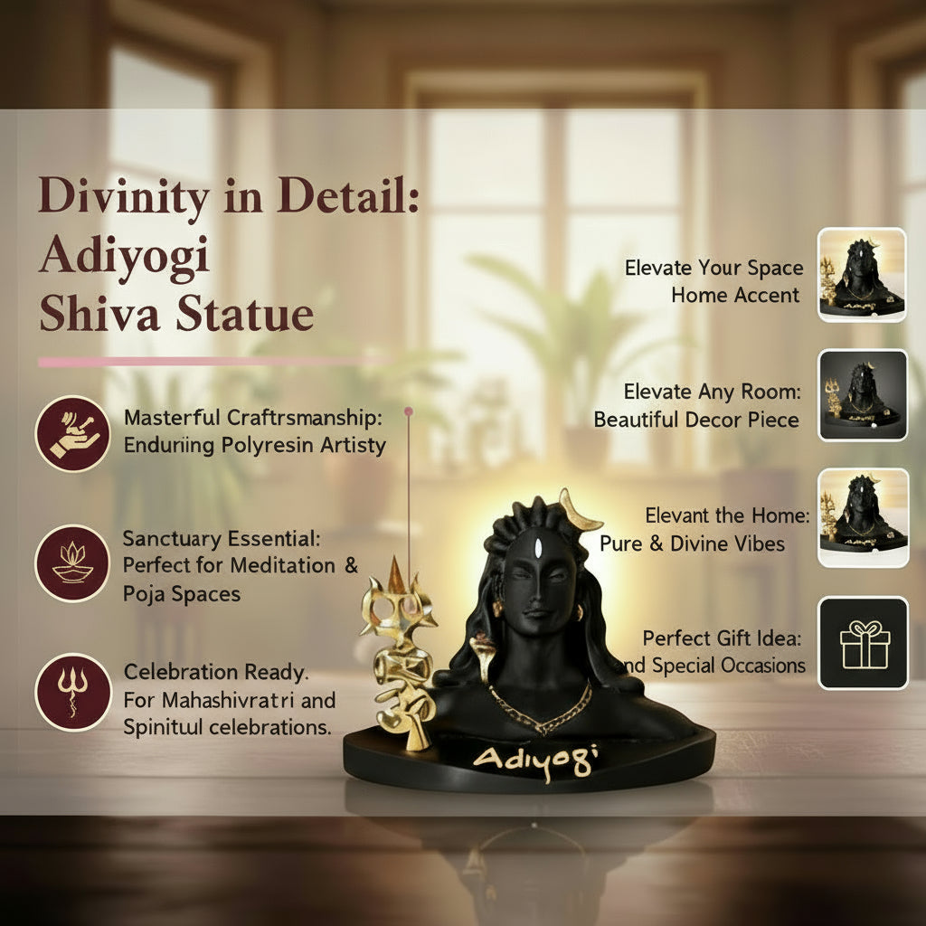 Each murti is handcrafted; slight color or texture variations may occur, reflecting its authenticity. The Adiyogi Shiva Murti promotes calmness, focus, and inspiration, making it a perfect addition to any personal or meditation space.