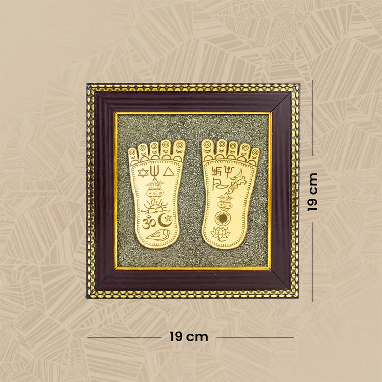 The Shree Dhan Lakshmi Charan Paduka Frame highlights the lotus feet of Goddess Lakshmi, symbolizing devotion, prosperity, and spiritual harmony. Perfect for home temples, meditation corners, or puja rooms, this frame fosters mindfulness, inner calm, and a devotional environment.