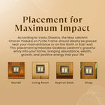 - Placement: Position the Shree Dhan Lakshmi Charan Paduka Frame in your puja room, meditation corner, or workspace.