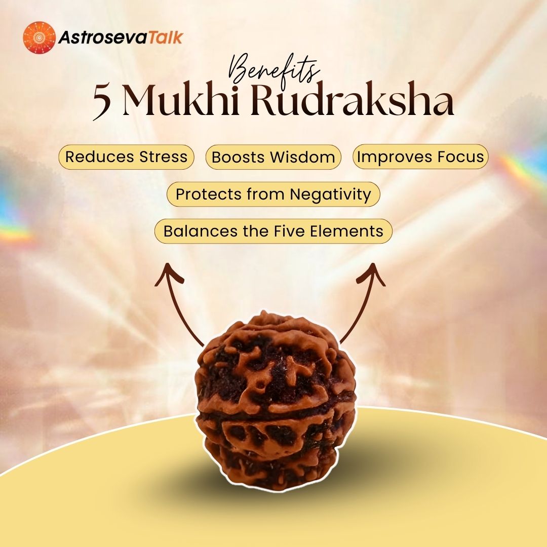 The 5 Mukhi Rudraksha is ruled by Kalagni Rudra and governed by the planet Jupiter offering spiritual protection mental peace and emotional grounding, it is ideal for individuals facing anxiety confusion or mental fatigue as it helps restore calm clarity and focus while strengthening inner wisdom and devotion making it suitable for meditation students and daily wear for peace,
